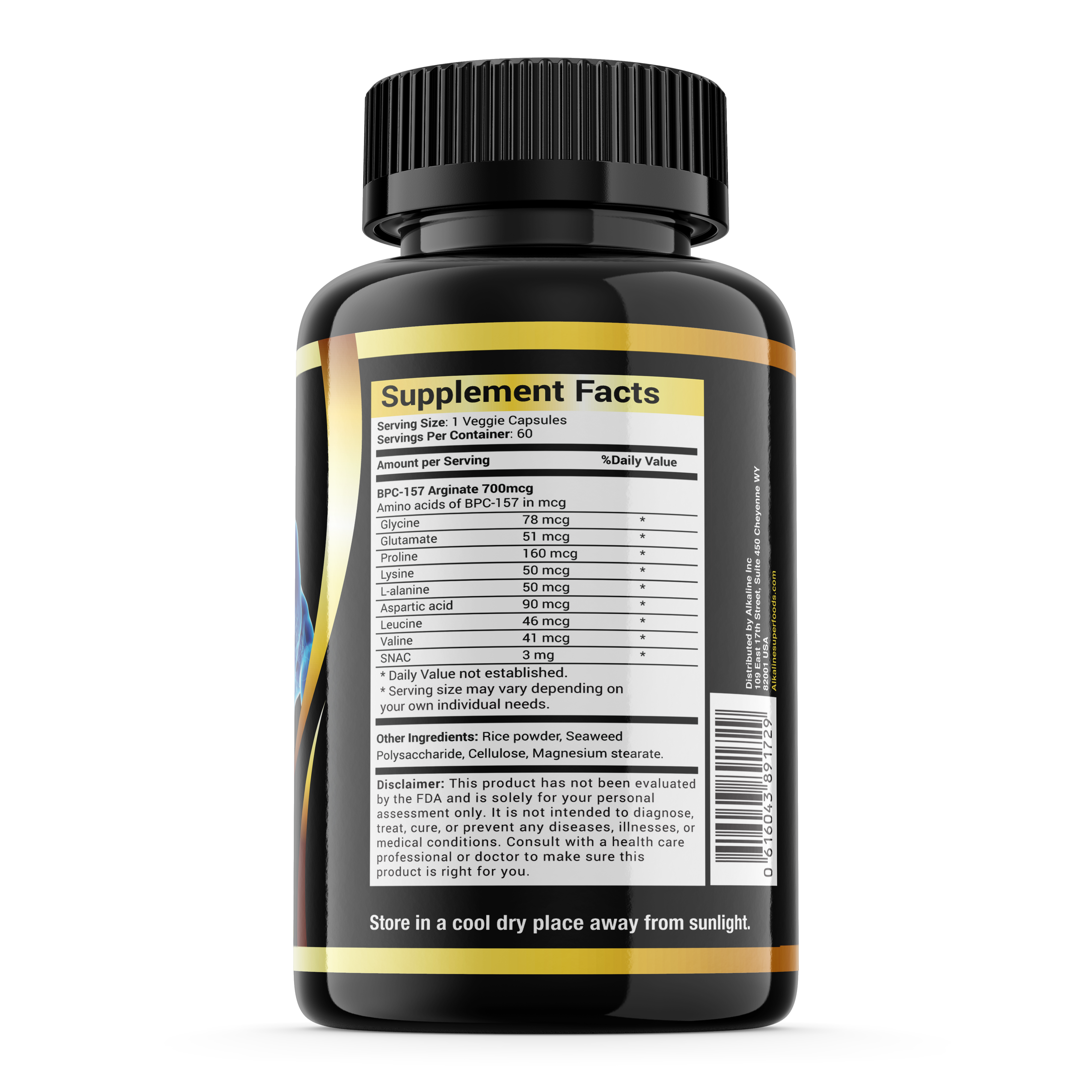 .important-note { font-weight: bold; font-size: 1.5em; color: red; } BPC-157: Advanced Amino Acid Complex for Recovery and Daily Resilience BPC-157 by Alkaline Superfoods is a premium amino acid blend designed to support tissue recovery, mobility, and overall wellness—without compromising your clean routine. Developed for active individuals, this vegan-friendly formula features enhanced absorption support and buffered capsule delivery for consistent, everyday use. Why It Works • Targeted Amino Acid Support – Contains a well-known amino acid complex used by individuals focused on recovery and performance. • Clean, Bioavailable Formula – Crafted with plant-based capsule ingredients and buffered salts to support absorption and effectiveness. • Supports Active Recovery – A trusted addition to movement, mobility, and regeneration-focused wellness routines. • No Fillers, No Compromises – Free from gluten, soy, artificial additives, and synthetic stimulants. What’s Inside • BPC-157 (Arginate Salt) – A lab-crafted amino acid compound widely recognized for its role in recovery-focused supplementation. • SNAC (Salcaprozate Sodium) – Included to support nutrient transport and capsule absorption. • Seaweed Polysaccharide & Rice Powder – Naturally sourced stabilizers for clean delivery. For Those Who Push Hard and Recover Smarter Whether you’re training, recovering from physical strain, or simply committed to moving well for life—BPC-157 is designed to help support your daily health foundation. Stack it with your favorite Alkaline Superfoods formulas to reinforce wellness from the inside out. Ingredients BPC-157 Amino Acid List Glycine Glutamic Acid Proline Lysine Alanine Aspartic Acid Leucine Valine SNAC (salcaprozate sodium) 3mg Our capsules are gel-based and free from animal products, making them suitable for Vegetarians and Vegans. Other ingredients Rice Powder Microcrystalline Cellulose Vegetable Capsules (Hypromellose) Bottle size: 60 Gel Capsules