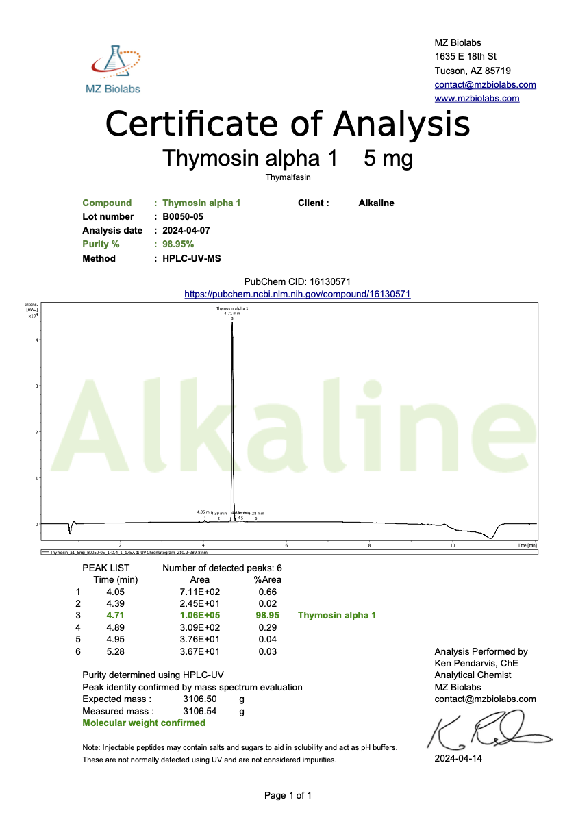 Thymosin Alpha-1 (Tα1) is a synthetic peptide composed of 28 amino acids, which mimics the natural thymosin alpha-1 produced by the thymus gland. Thymosin alpha-1 plays a crucial role in modulating the immune system and promoting immune responses.